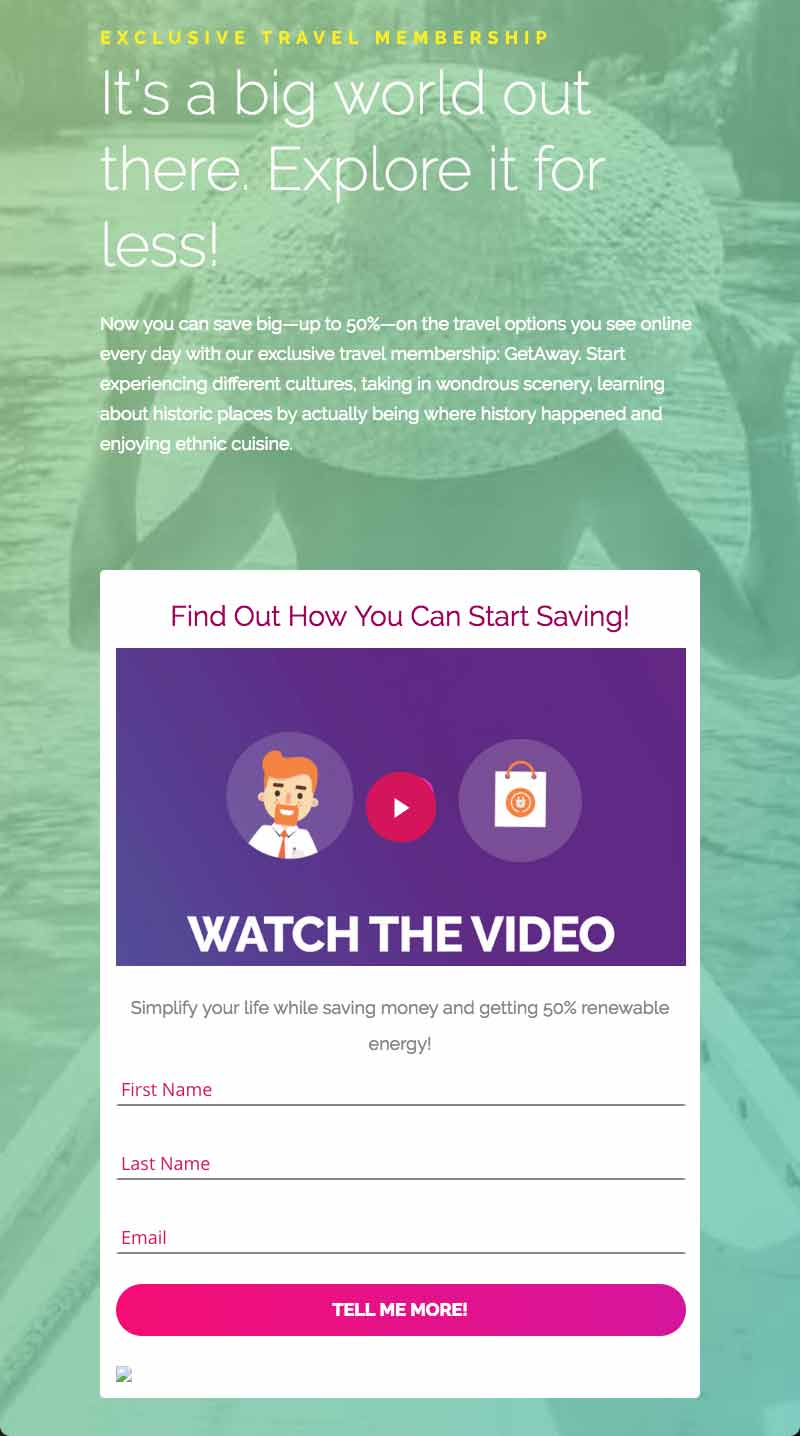 LINKS TO FULL ENROLLMENT. Use these links to share more information about GetAway with your prospects. This is an informational page that will educate your prospect on the amazing benefits of GetAway and it also includes a lead capture form and links to your personal website for enrollment.